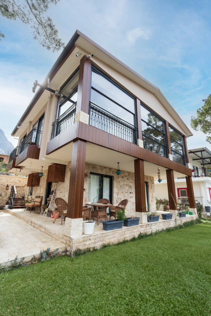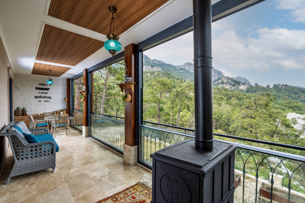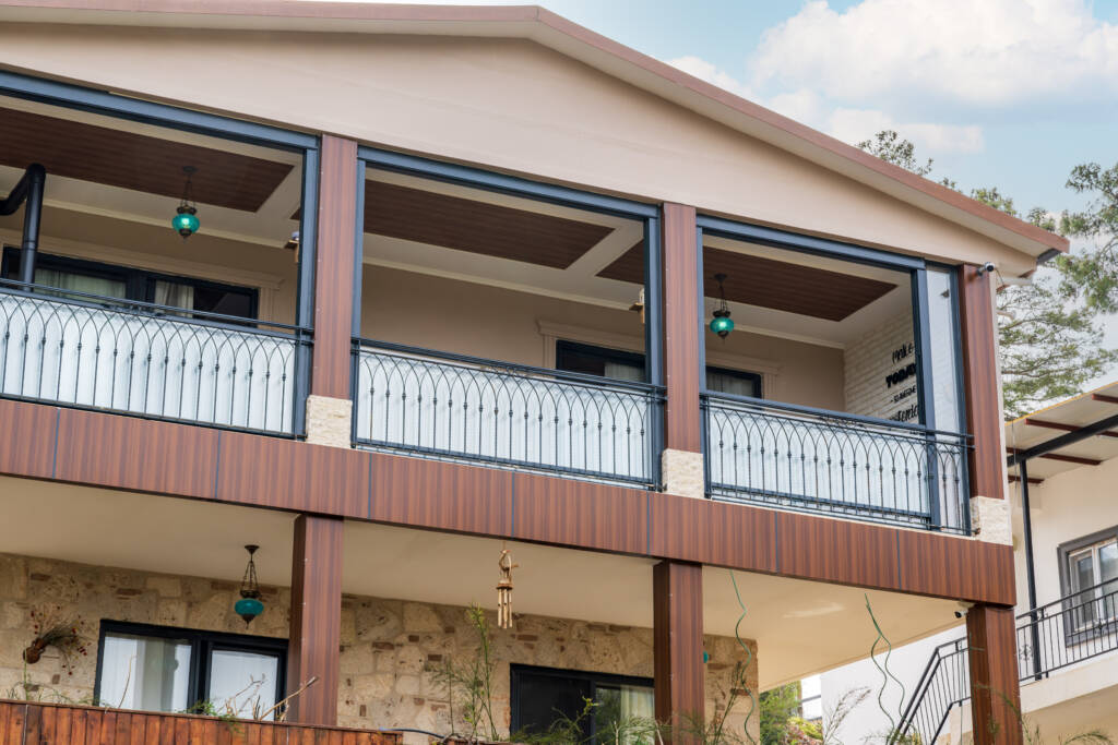 Bu projede tercih edilen cam balkon sistemi, bölgenin sıcak iklimine uygun olarak tasarlanmış olup rüzgâr, yağmur ve güneş etkilerine karşı maksimum koruma sağlar. Minimal tasarımı sayesinde manzarayı kesmeden ferah bir kullanım alanı oluşturan giyotin camlar, evin estetik değerini de yükseltmektedir.