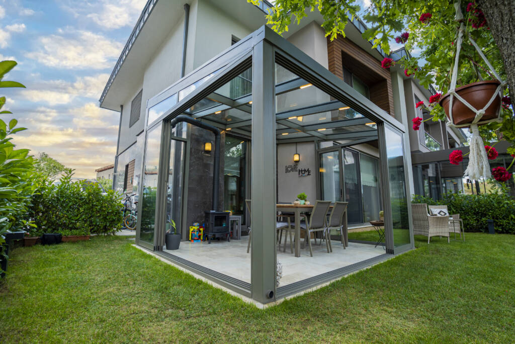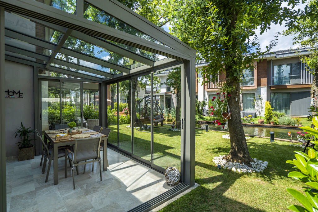 Bu projede tercih edilen sürme cam balkon, panoramik görüşü koruyan ince profil yapısı ve kolay kullanım sunan kanat mekanizmasıyla öne çıkıyor. Dayanıklı alüminyum profiller, temperli güvenlik camı ve su tahliye detayları sayesinde sistem; rüzgâr, yağmur ve güneş gibi dış etkenlere karşı maksimum koruma sağlıyor. Açık ve kapalı kullanım arasında geçiş kolaylığı sunması, villanın yaşam alanını dört mevsim kullanılabilir hâle getiriyor.